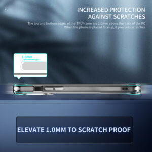 Raised TPU frame edges (1.0mm higher than the polycarbonate surface) provide extra protection against scratches, keeping your phone safe when placed face-up. - Shockproof Corners: